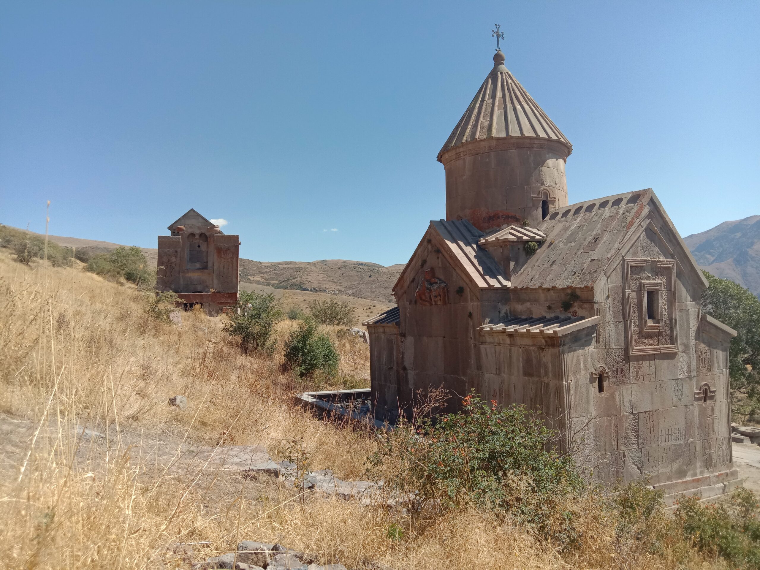 08.06. пн. С утра на внедорожниках поднимаемся к миниатюрному монастырю Спитакавор XIVв., расположенному над городом Ехегнадзор, напоминающему драгоценное ювелирное изделие.