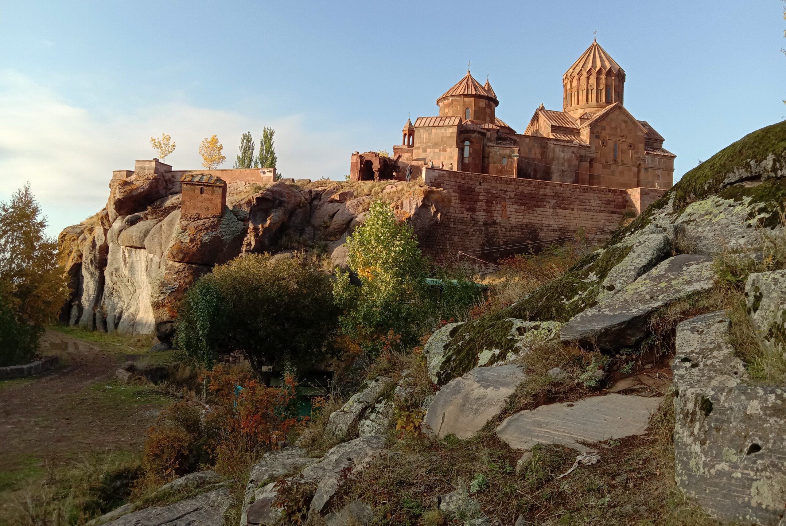 Затем спускаемся в долину, и вновь поднимаемся на противоположную сторону на высокогорное плато над Ехегисом. Там осматриваем крепость Смбатаберд и монастырь Цахац Кар X-XIв.